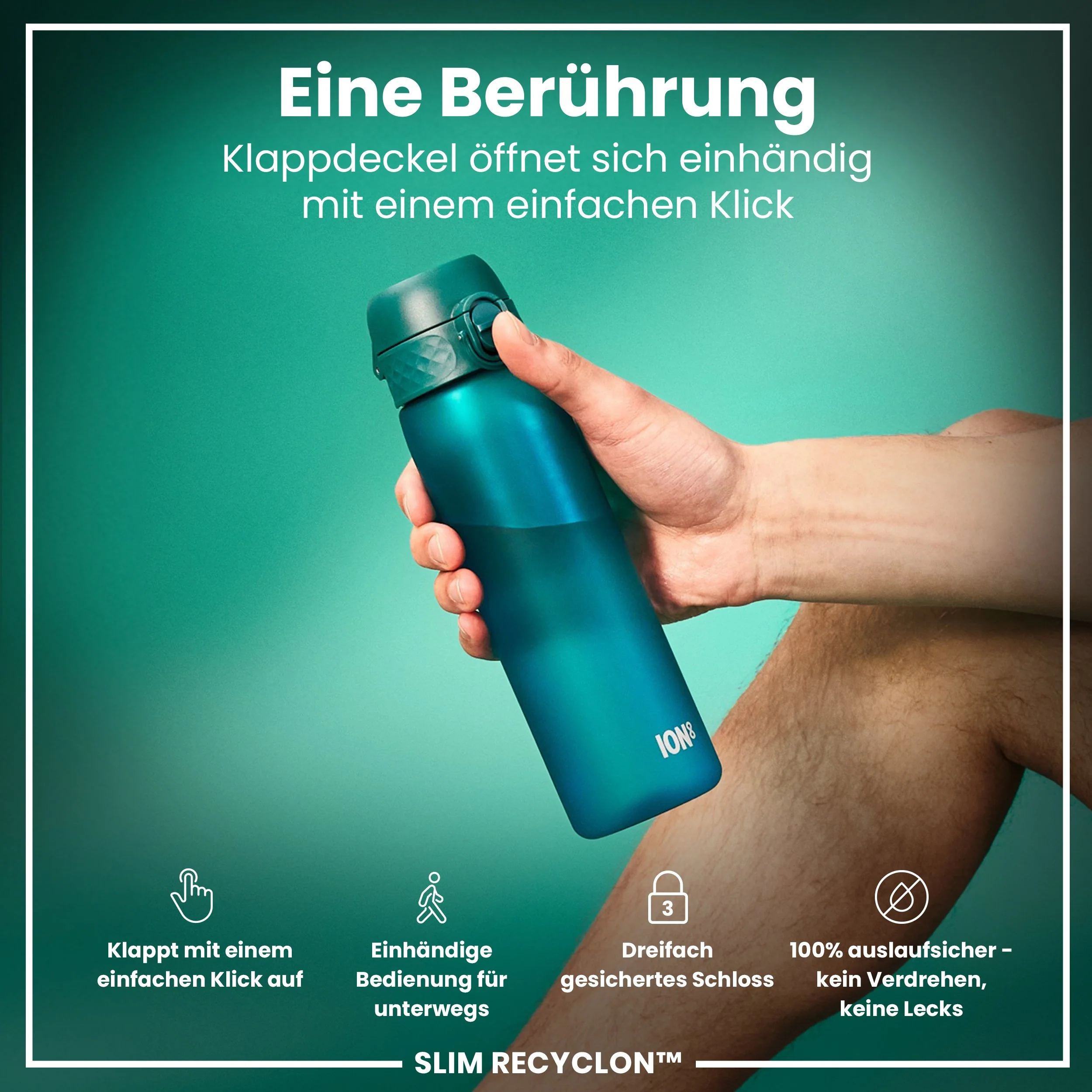 Hergestellt aus Recyclon™, einem transparenten, CO₂-neutralen Kunststoff, der teilweise aus Pflanzen besteht. Wiederverwenden und verantwortungsbewusst nachfüllen. Diese Trinkflasche ist lebensmittelecht, geruchsresistent, leicht zu reinigen und hält Getränke frisch und geschmackvoll.