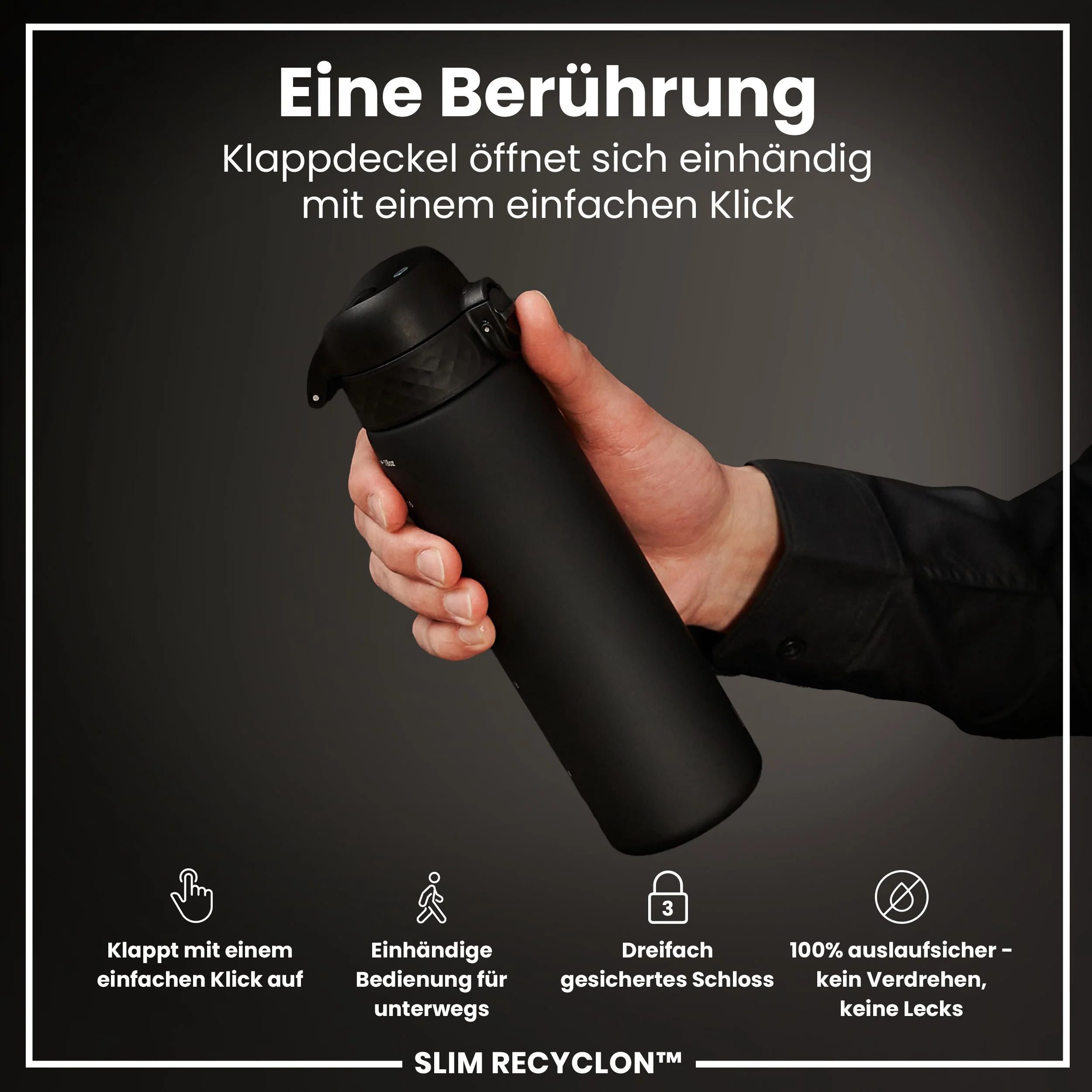 Schwarze 500 ml Auslaufsichere schlanke Wasserflasche