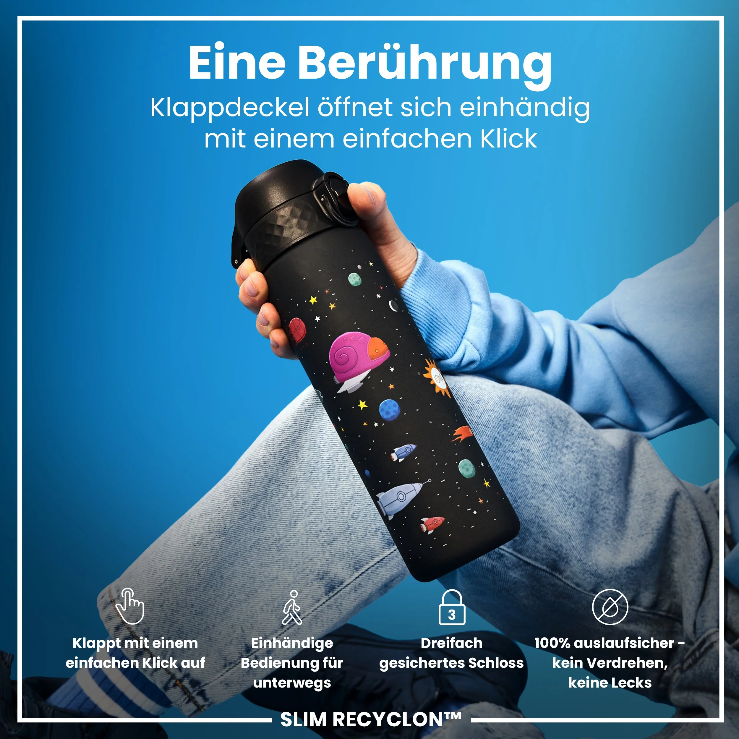 Raumschiffe 500-ml-auslaufsichere Slim-Wasserflasche
