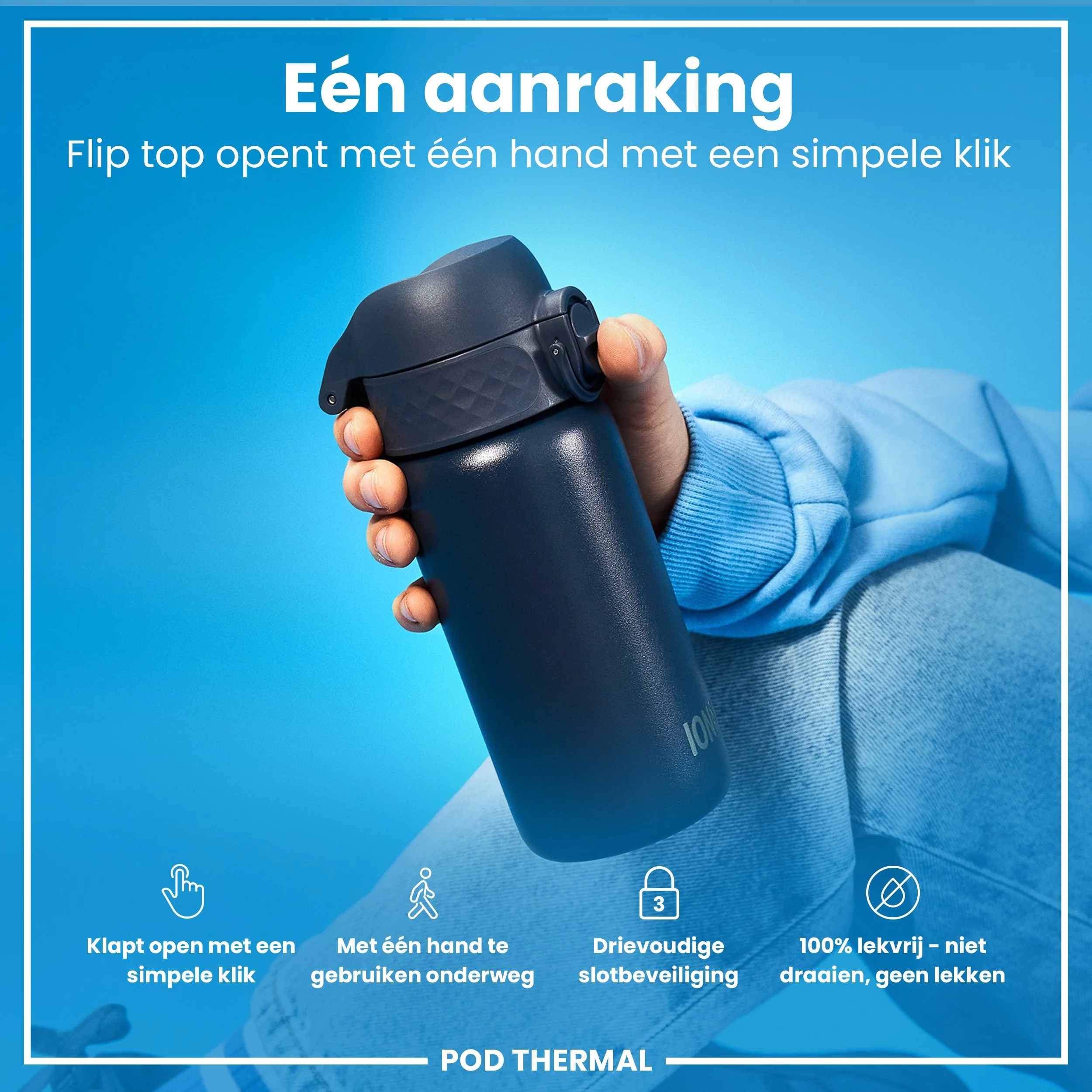100 % auslaufsichere 320 ml / 11 oz vakuumisolierte doppelwandige Edelstahlflasche mit gleichmĂ€Ăigem Trinkfluss fĂŒr tropffreie Erfrischung und einem hygienischen, vollstĂ€ndig aufklappbaren Deckel fĂŒr die Einhandbedienung unterwegs. HĂ€lt HeiĂgetrĂ€nke heiĂ und KaltgetrĂ€nke eiskalt und frisch ĂŒber Stunden.