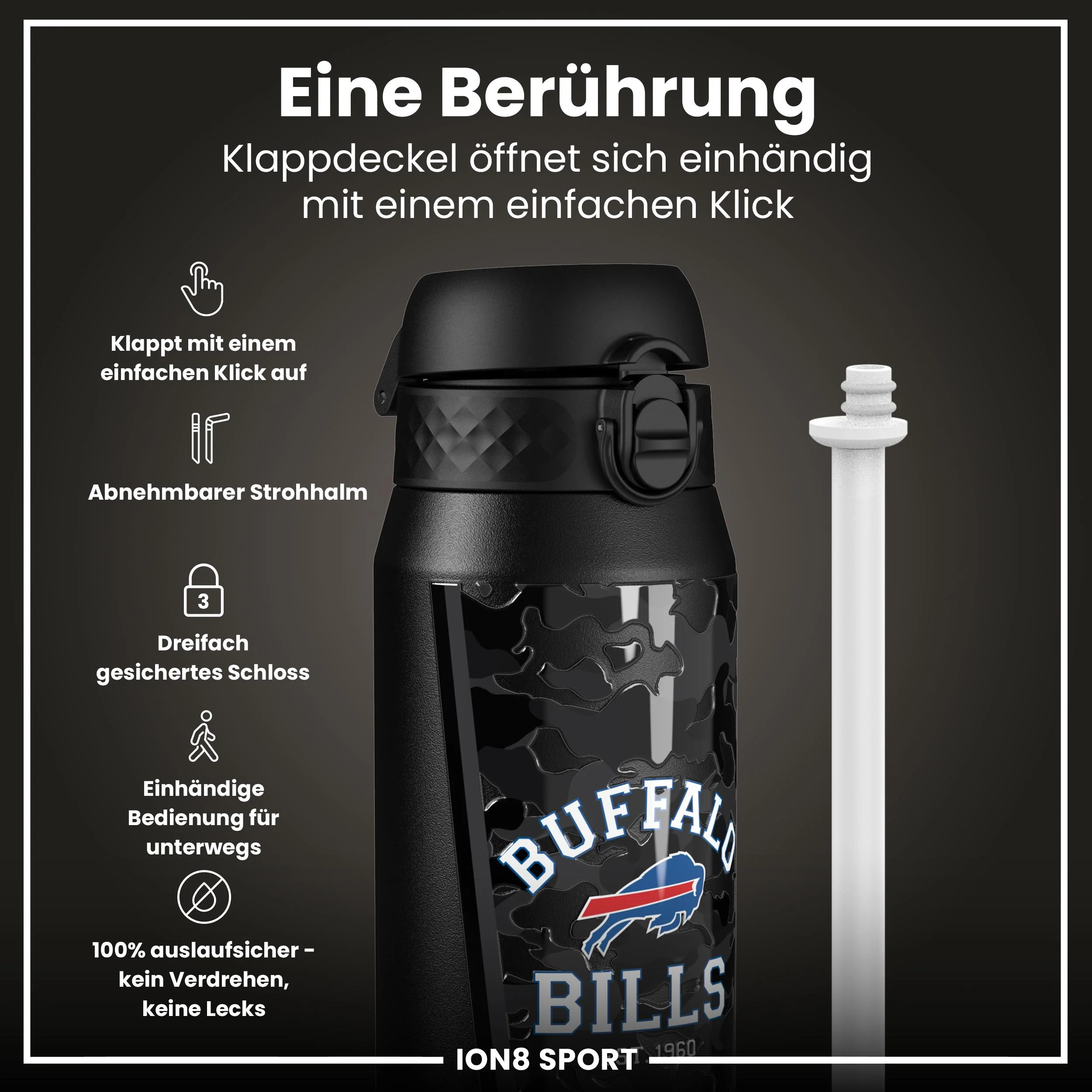 Steigere dein Spiel mit der offiziellen NFL Thermo-Isolierflasche von ION8. Diese 750-ml-Edelstahlflasche mit doppelwandiger Isolierung wurde nach den hohen Standards der NFL entwickelt und vereint erstklassige Leistung mit unverkennbarem NFL-Stolz.